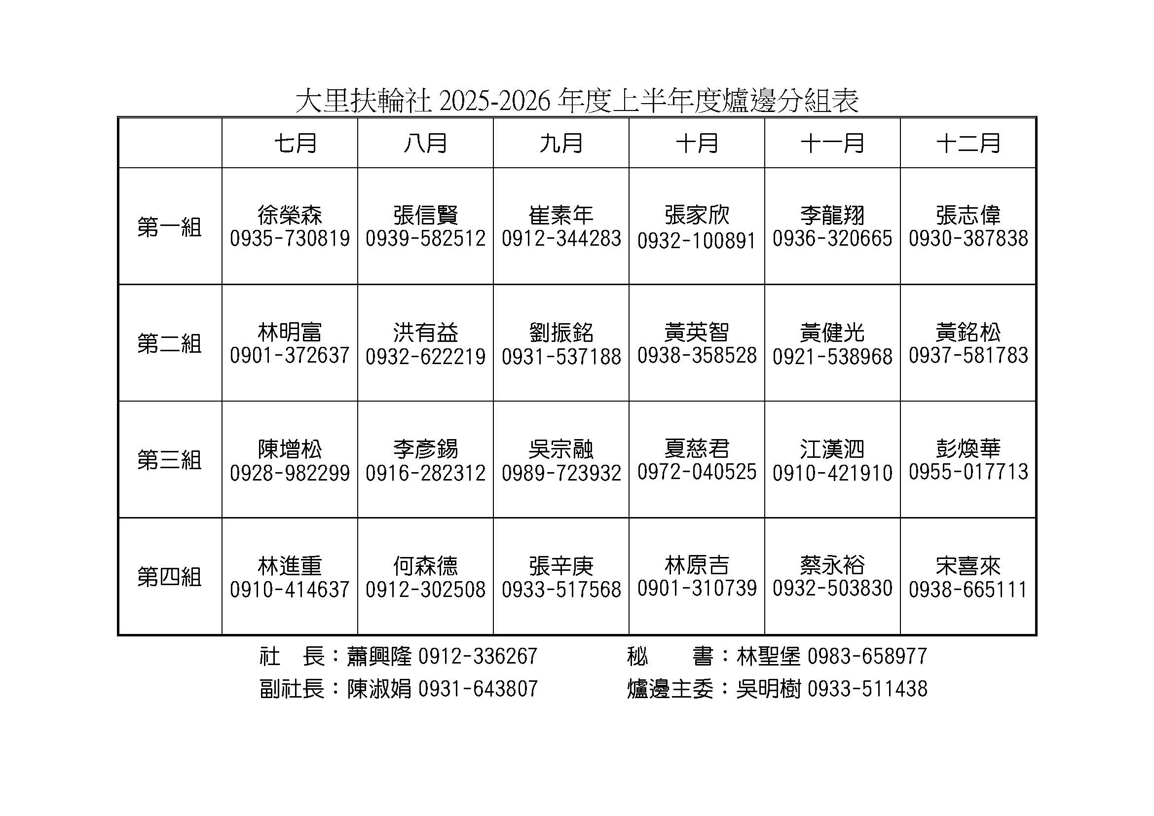 各項例會活動公告